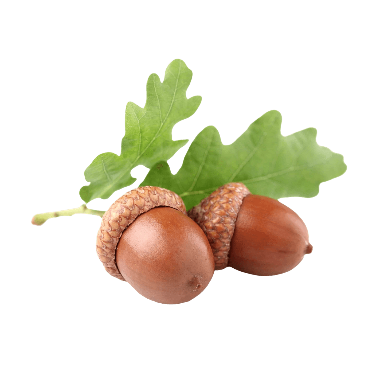 Желуди — высокоэнергетический продукт. В 100 граммах содержится 387 ккал, 24 г жиров и 40 г углеводов, преимущественно в виде крахмала, что обеспечивает медленное высвобождение энергии. Растительный белок (6 г на 100 г) поддерживает мышечную ткань. В составе присутствуют минералы: калий, магний и фосфор, важные для работы нервной системы и мышц, а также витамины группы B (тиамин, рибофлавин), участвующие в метаболизме.
