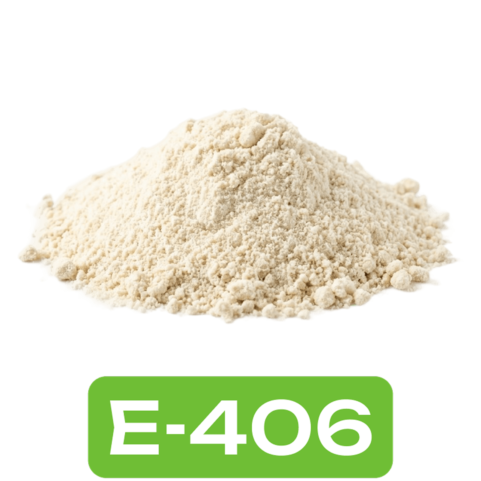 Продукт применяют для создания желе, мармелада, суфле, зефира и конфитюров. В молекулярной кухне он служит для сферификации. Подходит для загущения соусов, кремов и супов-пюре. В домашних условиях его используют для приготовления веганских десертов. В промышленности добавка E406 встречается в составе кондитерских изделий, молочных продуктов и некоторых мясных деликатесов для стабилизации текстуры. Каррагинан йота (E407) — похожий продукт из той же категории, также получаемый из морских водорослей.