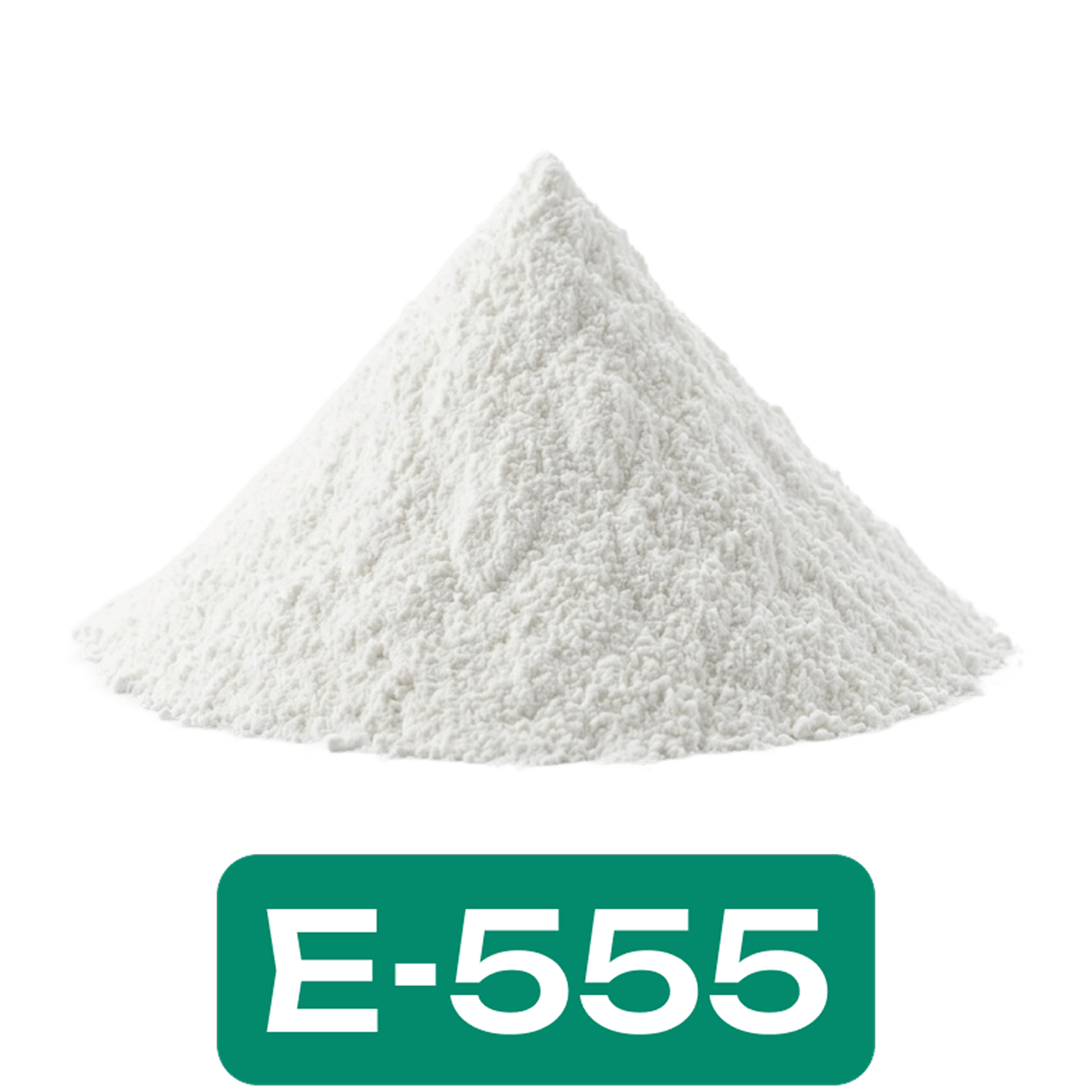 E555 используется в промышленном производстве сухих сыпучих продуктов. Чаще всего её добавляют в сухие смеси для выпечки, порошкообразные специи и приправы, сахарозаменители, сухое молоко, быстрорастворимые напитки и некоторые виды тёртого сыра. В домашних условиях эта добавка не применяется, так как требует точного профессионального дозирования в соответствии с технологическими регламентами. Её задача — обеспечить стабильность продукта при хранении на полке магазина. К другим антислеживающим агентам относится, например, пищевая сода (E500).