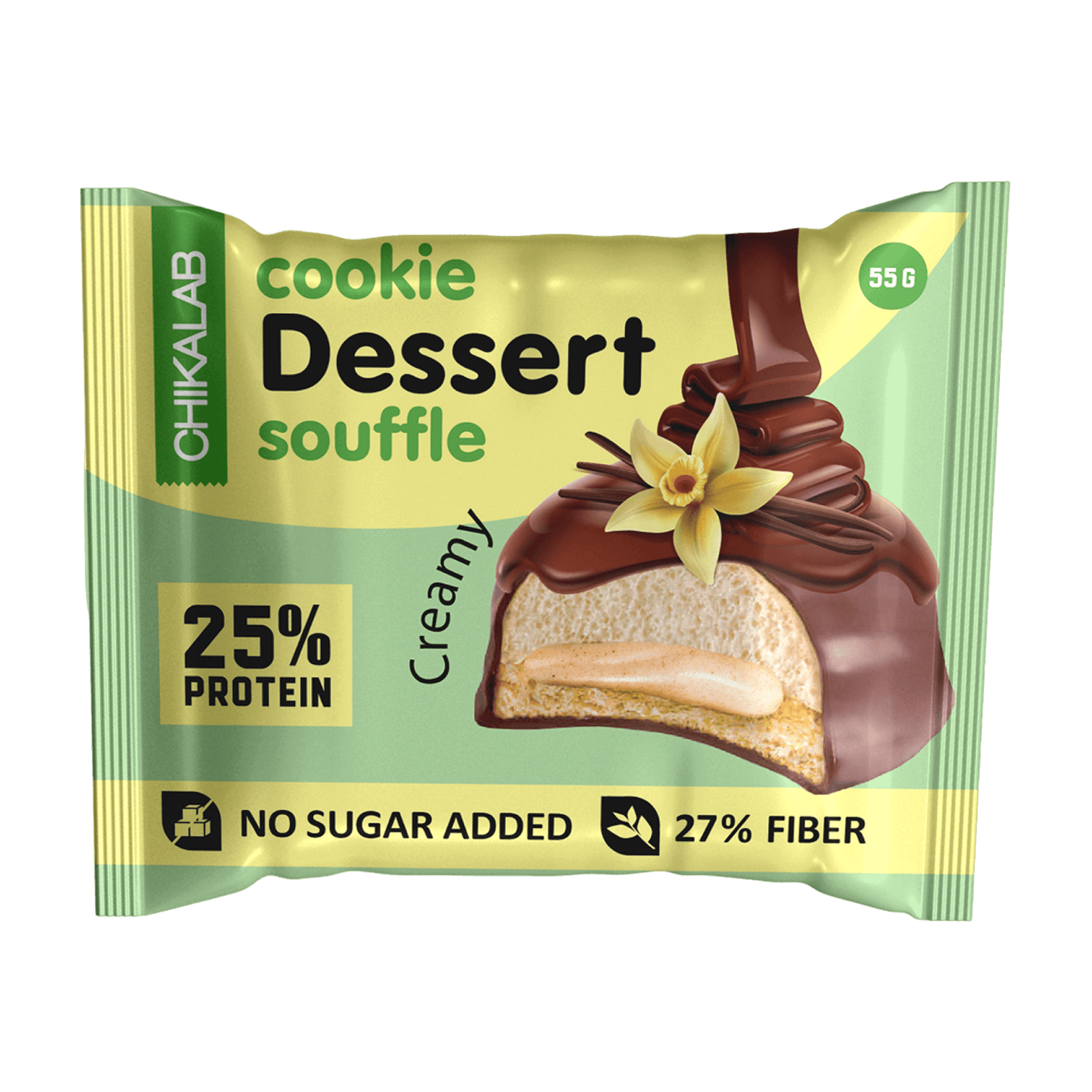 Загрузка продукта…Протеиновое печенье с нежным суфле сливочно-ванильного вкуса и молочной пастой с кешью. Без добавления сахара, с высоким содержанием белка и пищевых волокон. Покрыто молочным шоколадом без сахара, создающим идеальное сочетание вкуса и пользы для здорового питания.