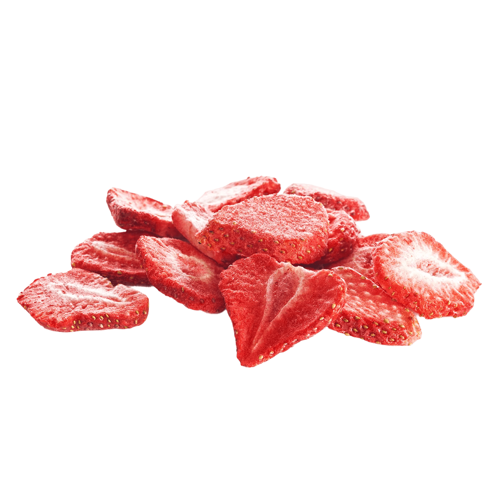 С ботанической точки зрения, клубника — это не ягода, а разросшееся цветоложе, на поверхности которого находятся настоящие плоды — орешки (те самые мелкие семена). Клубника является одним из самых популярных и любимых садовых растений в мире. В сушеном виде она сохраняет большую часть витамина С, если была подвергнута сублимационной сушке (лиофилизации), при которой не используется высокая температура. Натуральный цвет сушеной клубники обычно темнее, чем у свежей ягоды, а ярко-красный цвет может указывать на добавление красителей.