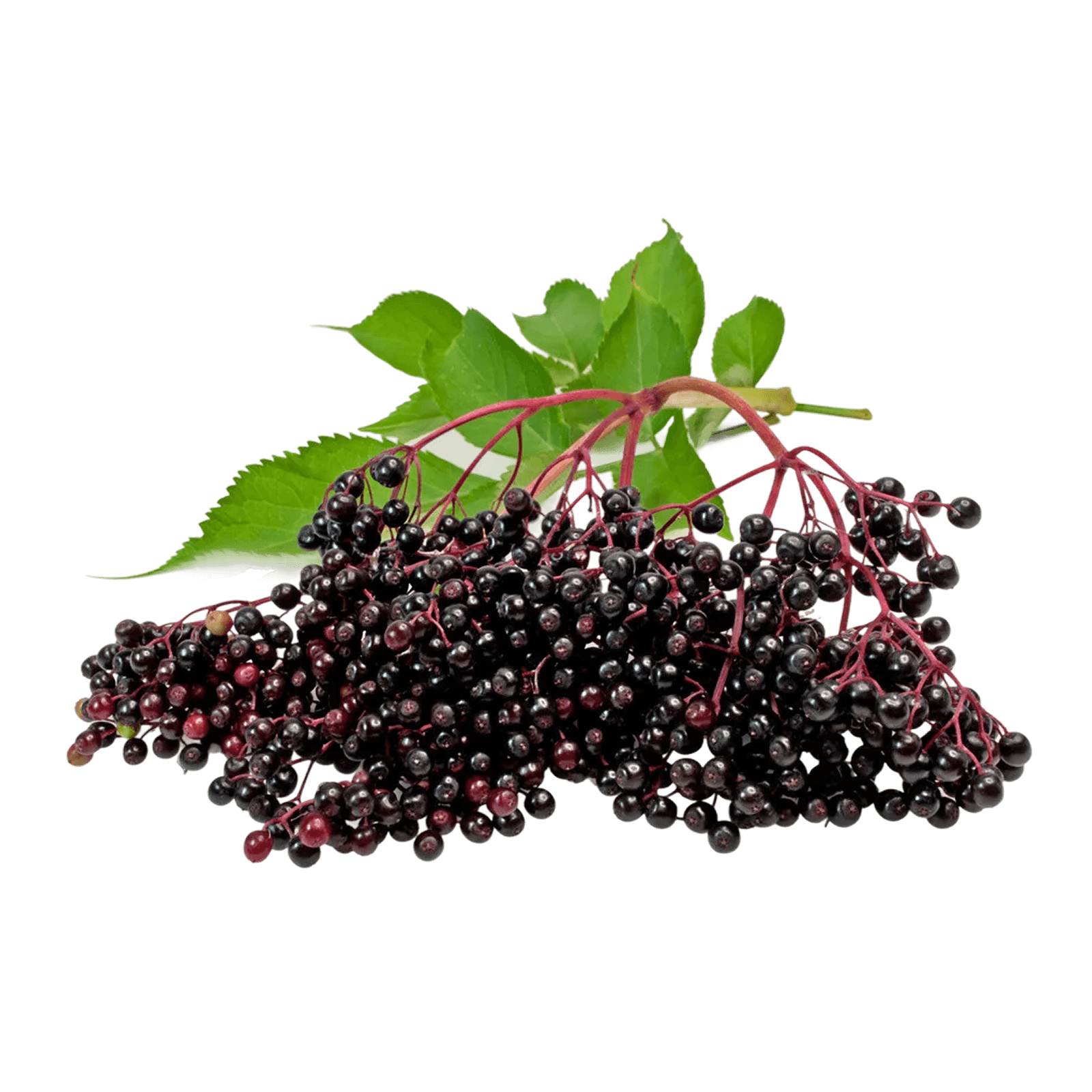 Ягоды черной бузины являются богатым источником антоцианов и флавоноидов, которые придают им интенсивный темный цвет и обладают сильными антиоксидантными свойствами. В их составе присутствует значительное количество аскорбиновой кислоты и провитамина А. Ягоды содержат органические кислоты, дубильные вещества, эфирные масла и пектин. Среди минеральных компонентов выделяются калий, кальций, железо и фосфор. Также в продукте обнаружены свободные аминокислоты и небольшое количество витаминов группы В. Состав обеспечивает ягодам высокую пищевую ценность и выраженное биологическое воздействие на организм.