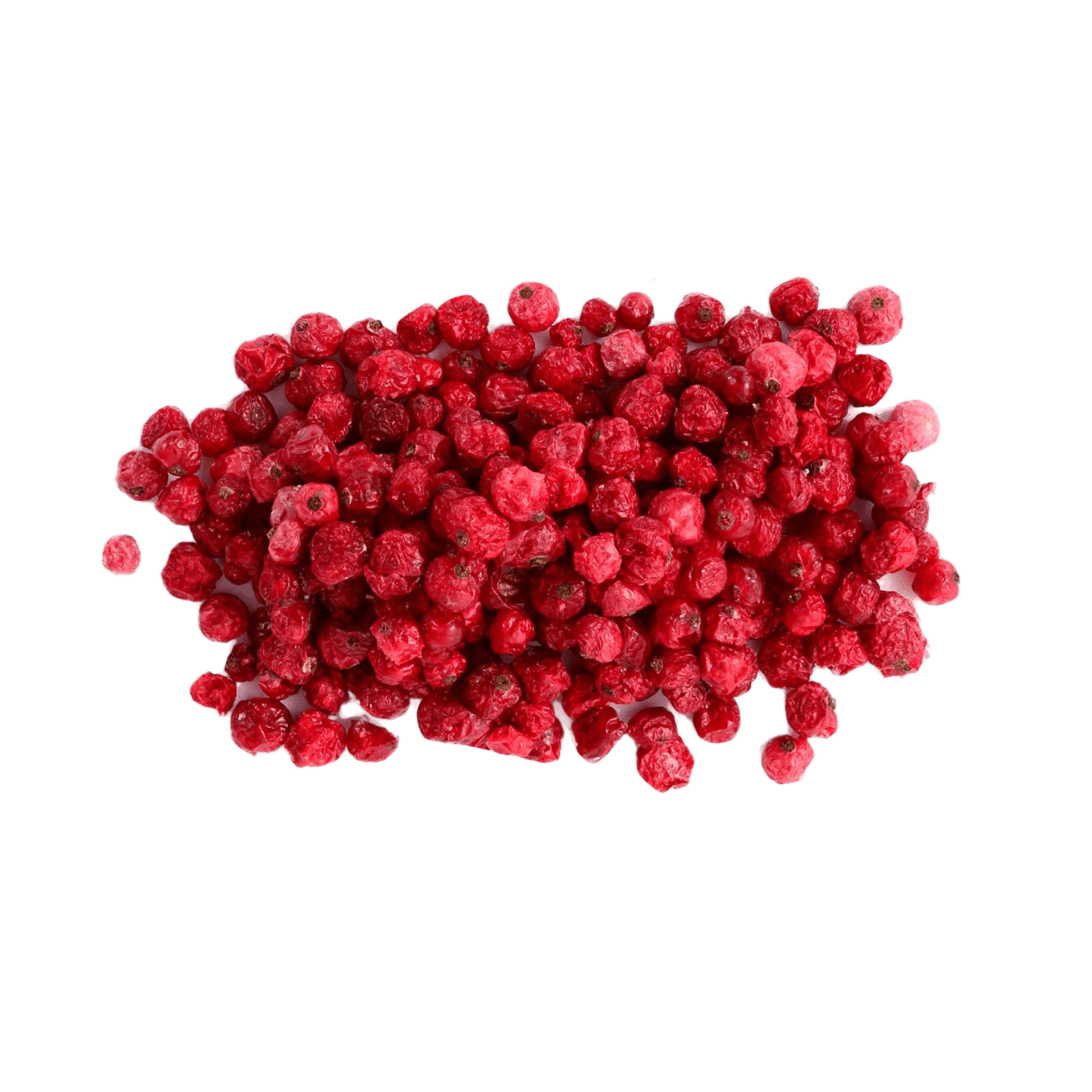Вкус сублимированной клюквы — это концентрированный, интенсивный взрыв кислоты и выраженной терпкости. В отличие от других ягод, сладость в ней минимальна или отсутствует вовсе, что подчеркивает ее уникальный дикий профиль. Аромат лесной, свежий, с характерными вяжущими нотками. Текстура продукта уникальна: ягоды очень легкие и хрустящие. При раскусывании они приятно ломаются, а затем быстро тают во рту, высвобождая концентрированный кислый сок и длительное, вяжущее послевкусие. Этот профиль делает ее идеальным акцентом в блюдах, требующих яркой кислинки.