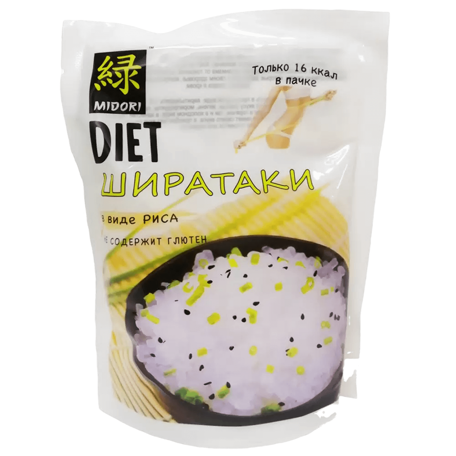 Ширатаки в форме риса содержит в основном воду и растворимую клетчатку, называемую глюкоманнаном. Он практически не содержит углеводов, жиров и белков, что делает его низкокалорийным продуктом. Витамины и минералы могут присутствовать в незначительных количествах, но ширатаки не является значительным источником этих питательных веществ.