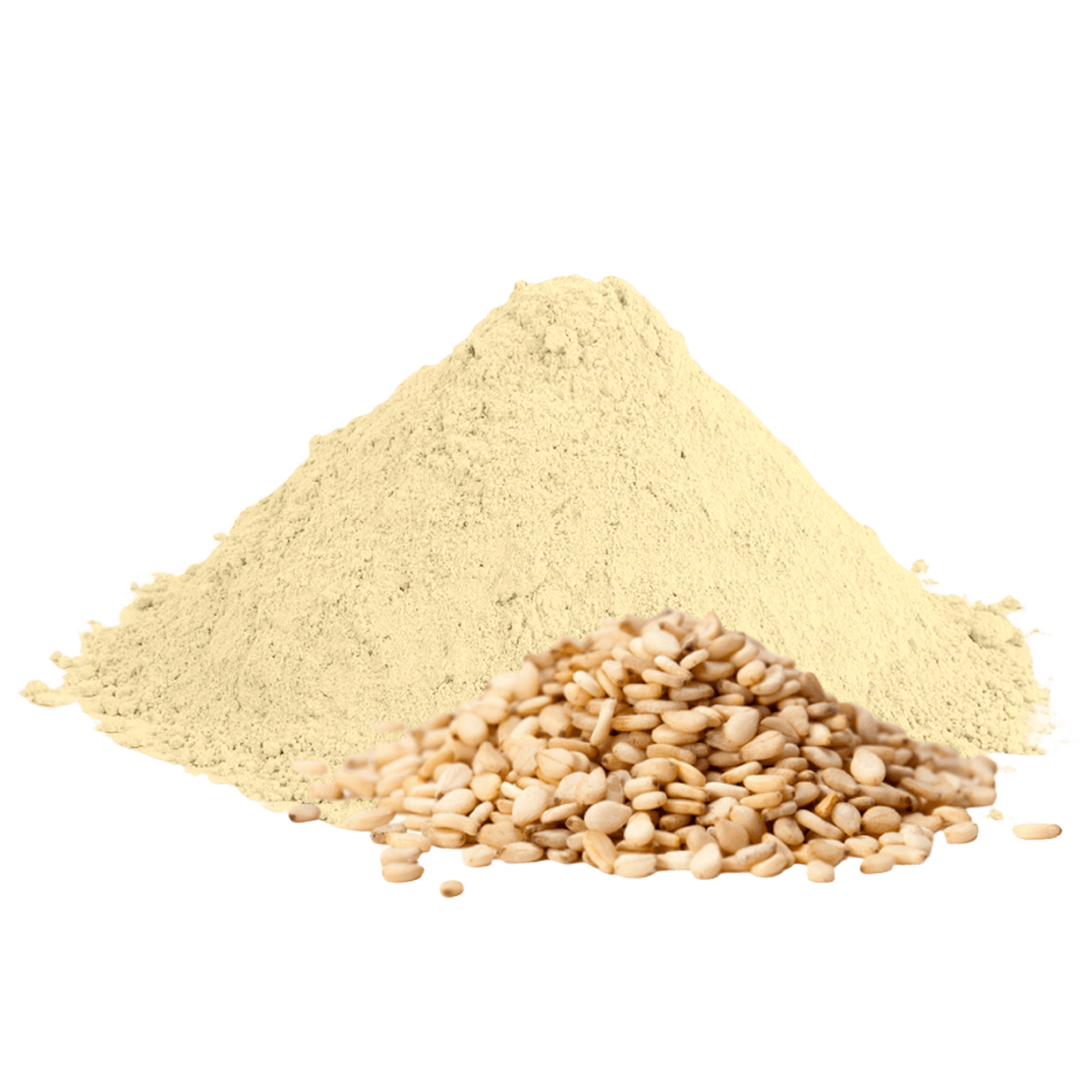Порошкообразный продукт из перемолотых семян кунжута. Отличается высоким содержанием белка и жира. Используется в кулинарии для приготовления выпечки, соусов и десертов. Имеет характерный ореховый вкус и аромат.