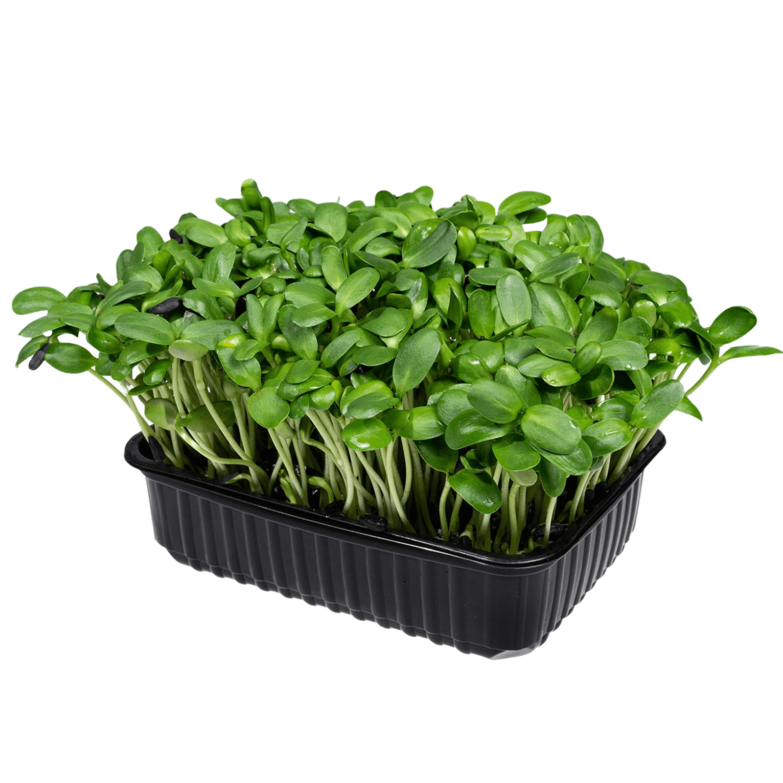 Молодые побеги подсолнечника собирают на ранней стадии роста, обычно через 7–14 дней после проращивания. Продукт относится к свежей зелени, отличается нежными стеблями и семядольными листочками. Его используют для украшения блюд и как питательную добавку. Срок годности составляет 7 дней.