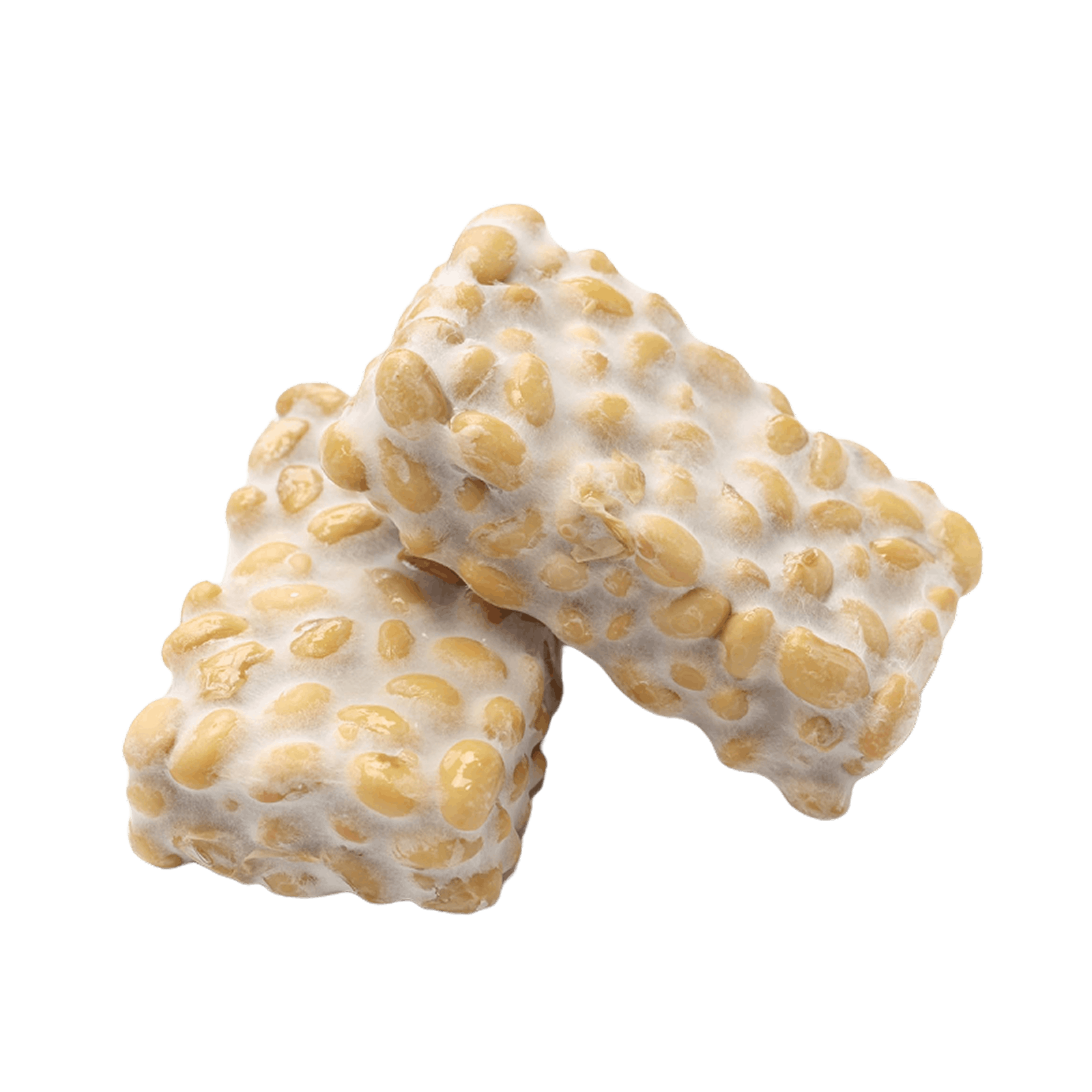 Темпе — ферментированный продукт из цельных соевых бобов. Производство начинается с вымачивания и варки бобов. Затем их смешивают с заквасочной культурой плесени Rhizopus oligosporus и оставляют для ферментации на 24–48 часов при температуре около 30°C. В результате бобы скрепляются в плотный, компактный брикет, пронизанный безопасной для человека белой плесенью. Этот процесс формирует уникальную текстуру и орехово-грибной вкус, повышает доступность питательных веществ.