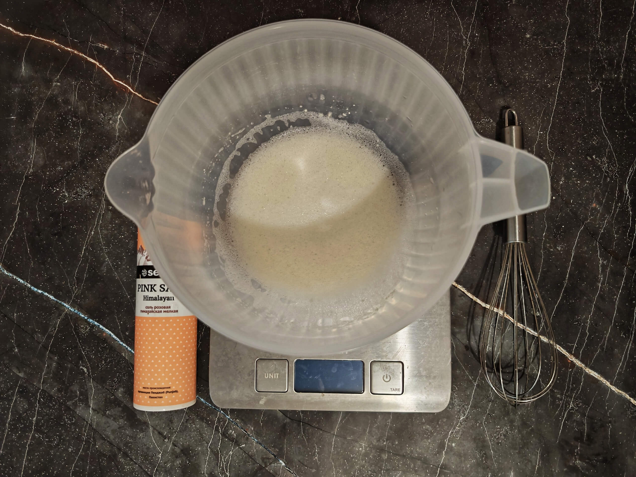 Растопите сухой белок и добавьте соль (1 мин)