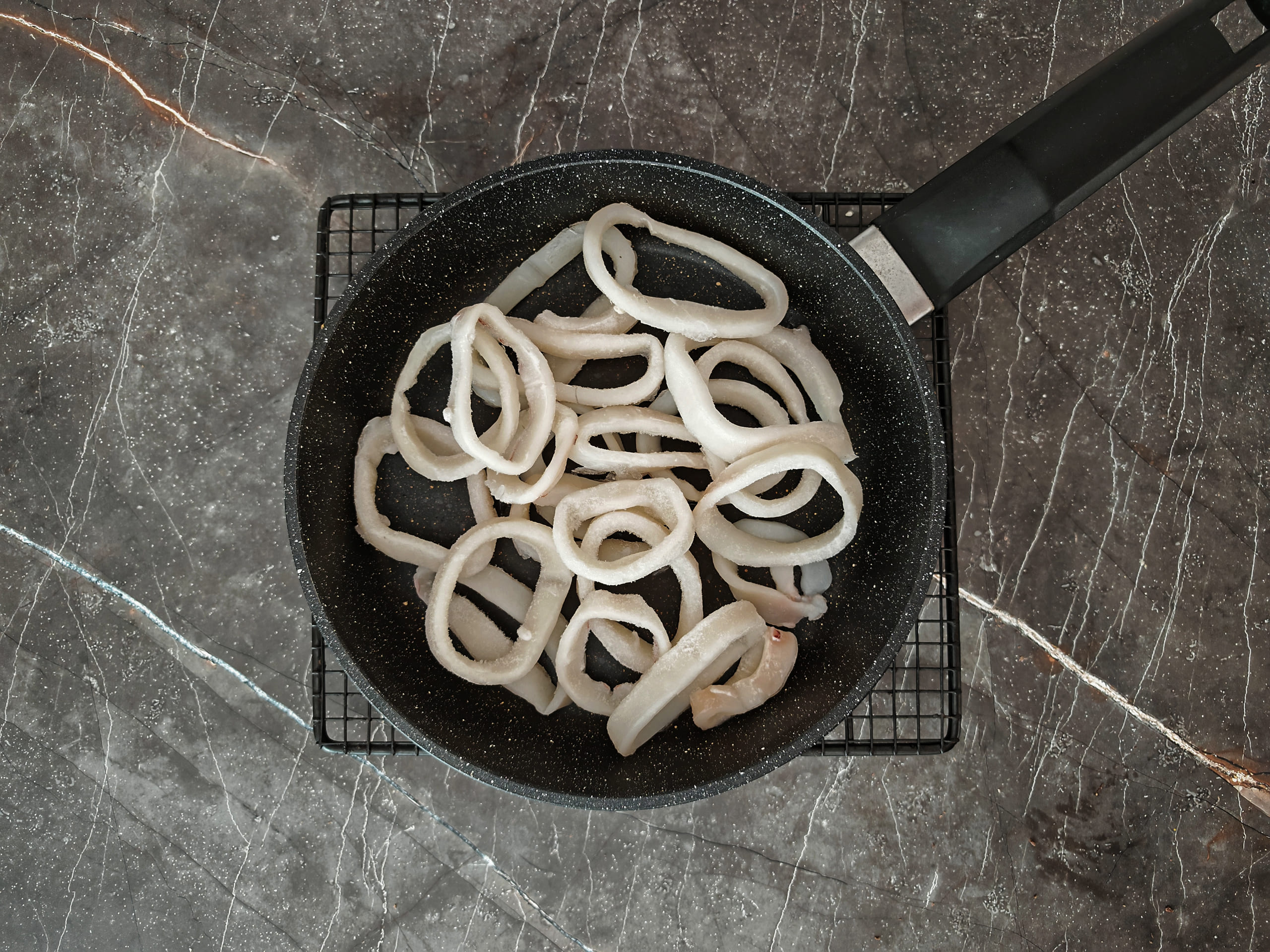 Часто морепродукты продают в глазури, которая при размораживании превращается в большое количество жидкости. В этих случаях удобно не ждать выпаривания жидкости при жарке, а слить ее отдельно.