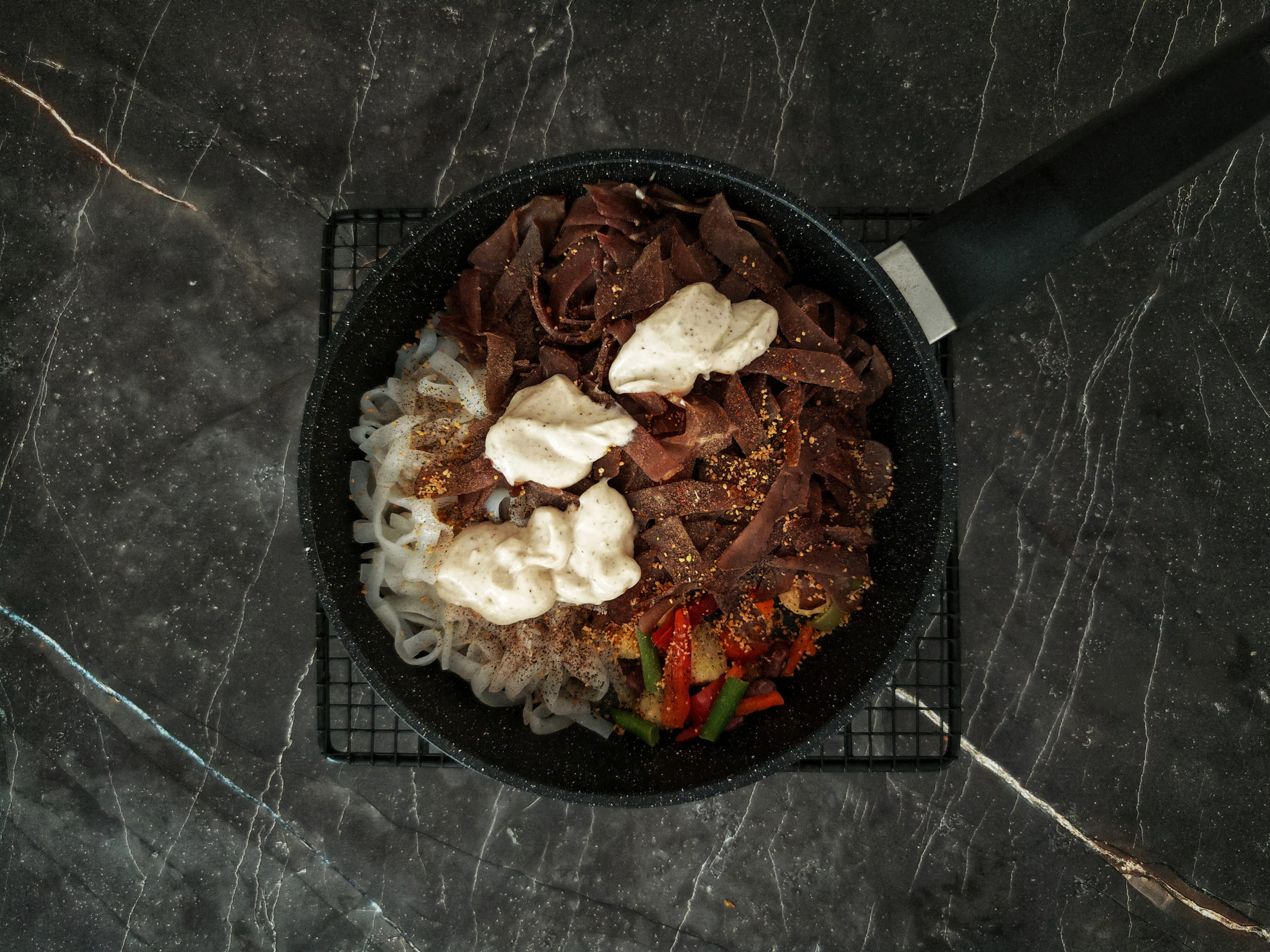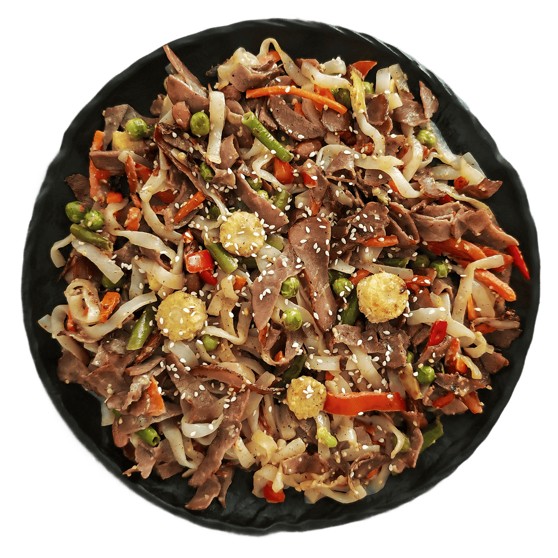 Wok из ширатаки с мясной нарезкой и овощами — отличный вариант добавления низкокалорийной лапши в ежедневный рацион. Сочетание оказалось успешным: внешний вид, текстура и вкус напоминают традиционный азиатский вок. Соус «Кунжутный» придает блюду богатый пряный аромат, который усиливается специями.
